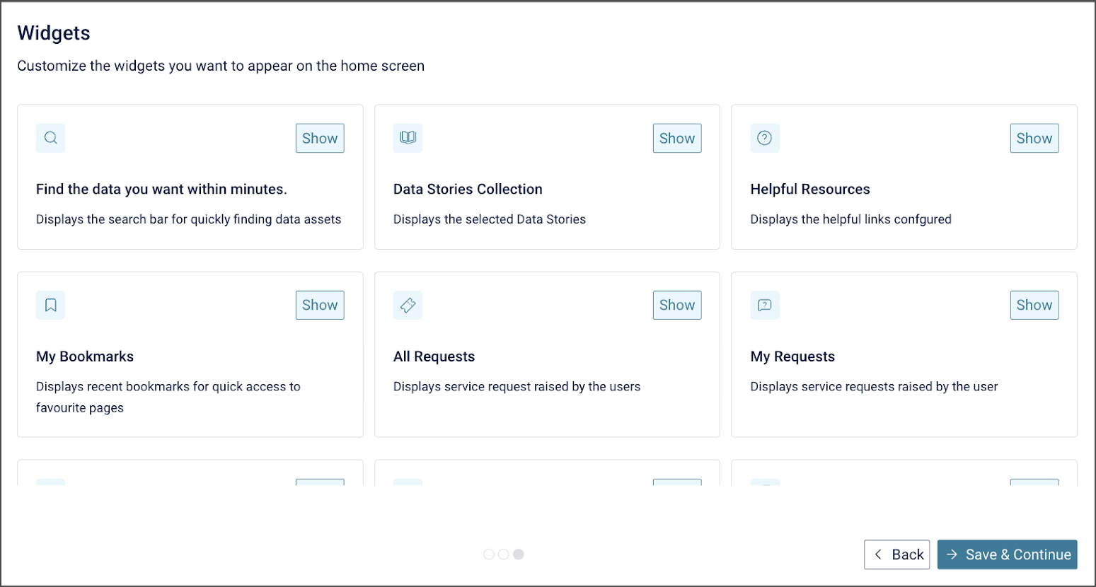 In this step, we can Personalize the homepage by selecting the hide/show option beside each widget.