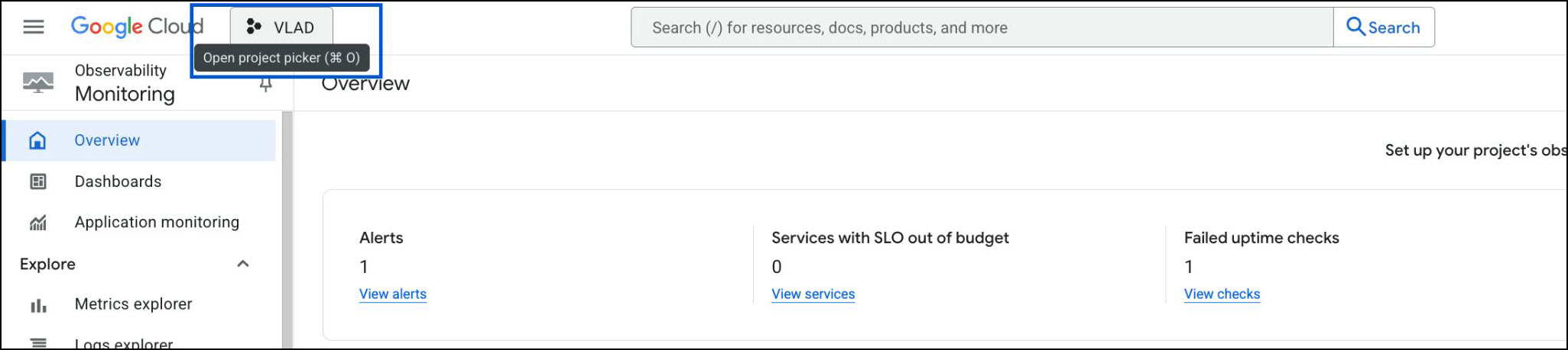 Click Open project picker in the top navigation bar.