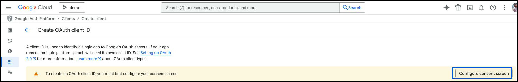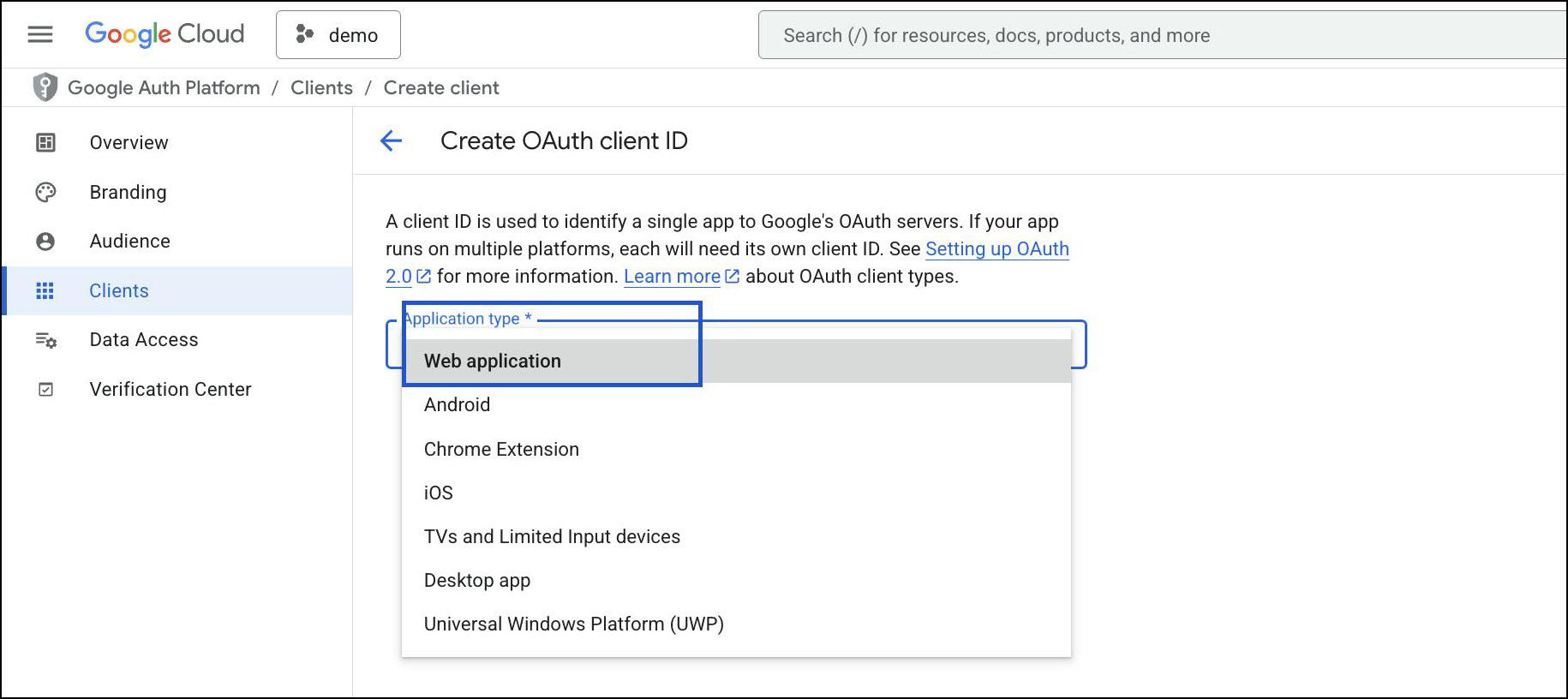 Create OAuth Client ID