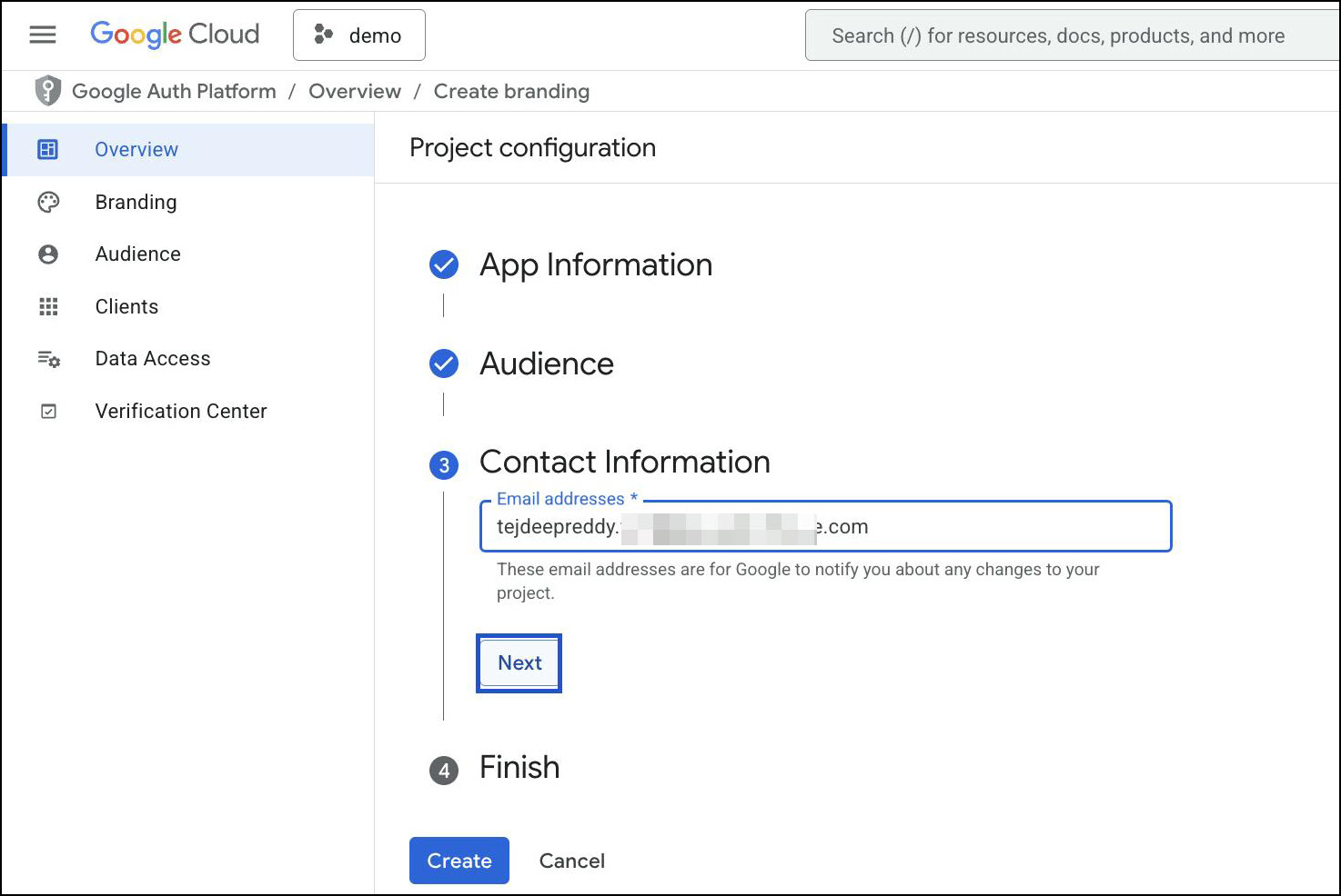 Add a Contact Email address → click Next.