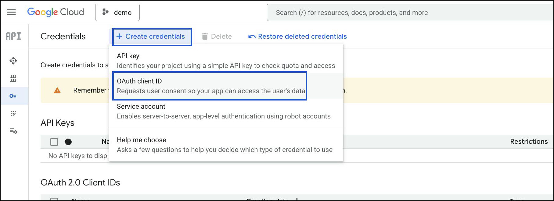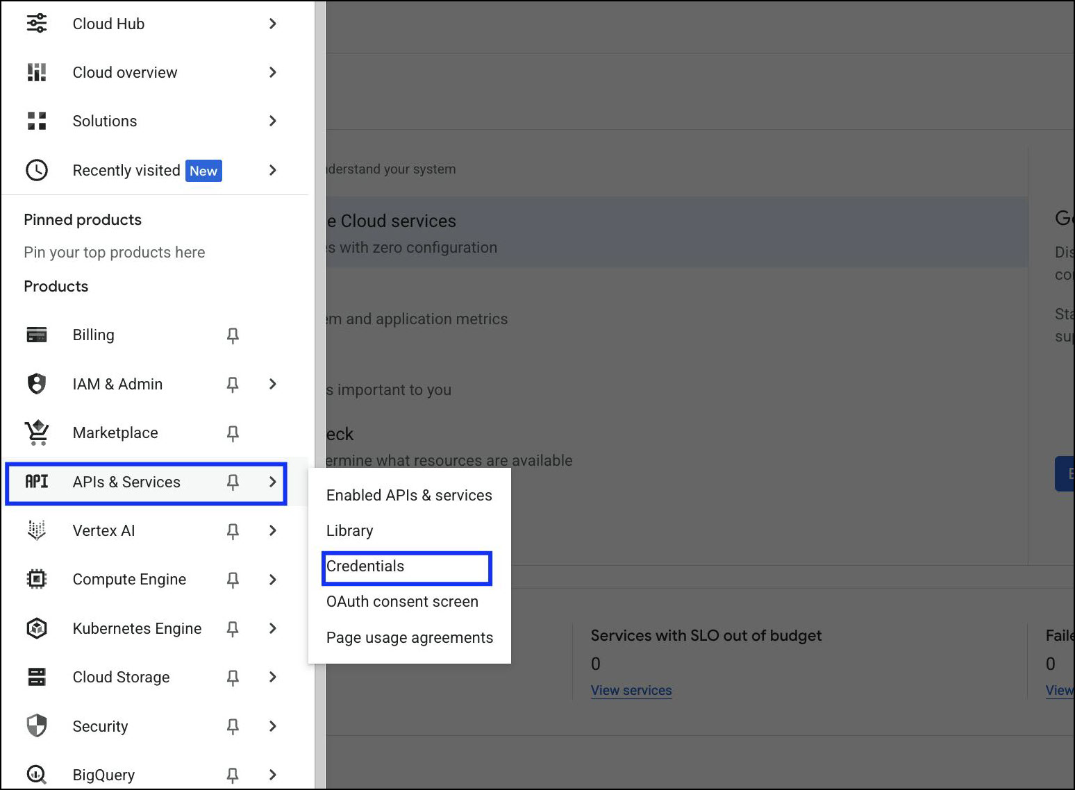 Navigate to APIs & Services > Credentials.
