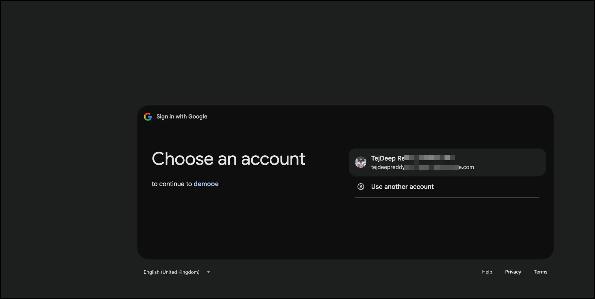 Select a Google OAuth 2.0 account.
