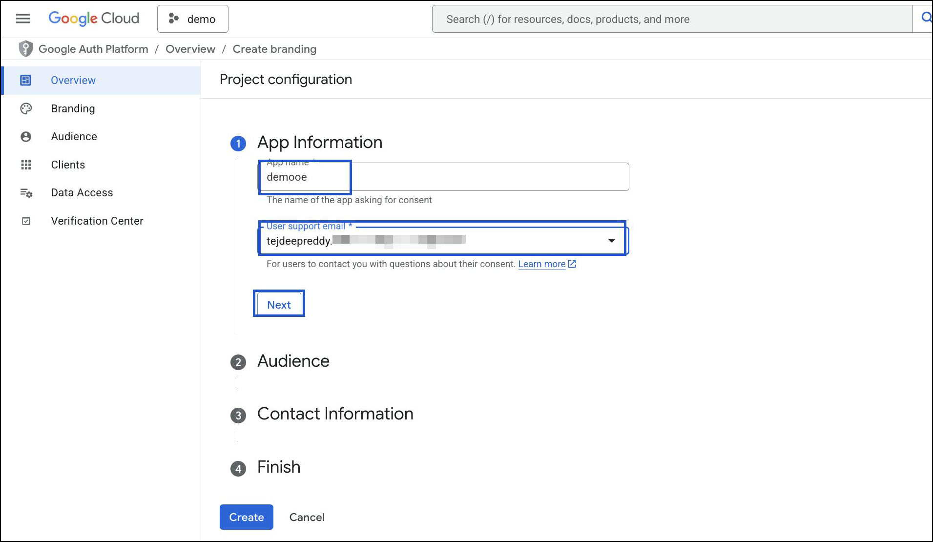Provide App Name and Support Email → click Next.
