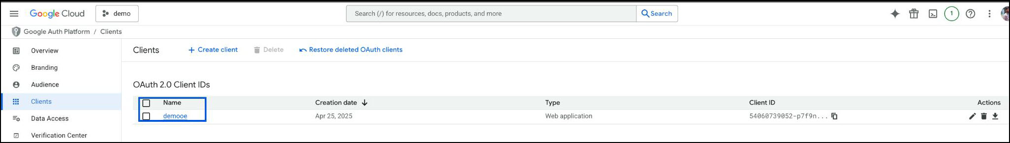 Navigate to Clients and click on the OAuth2.0 Client ID.