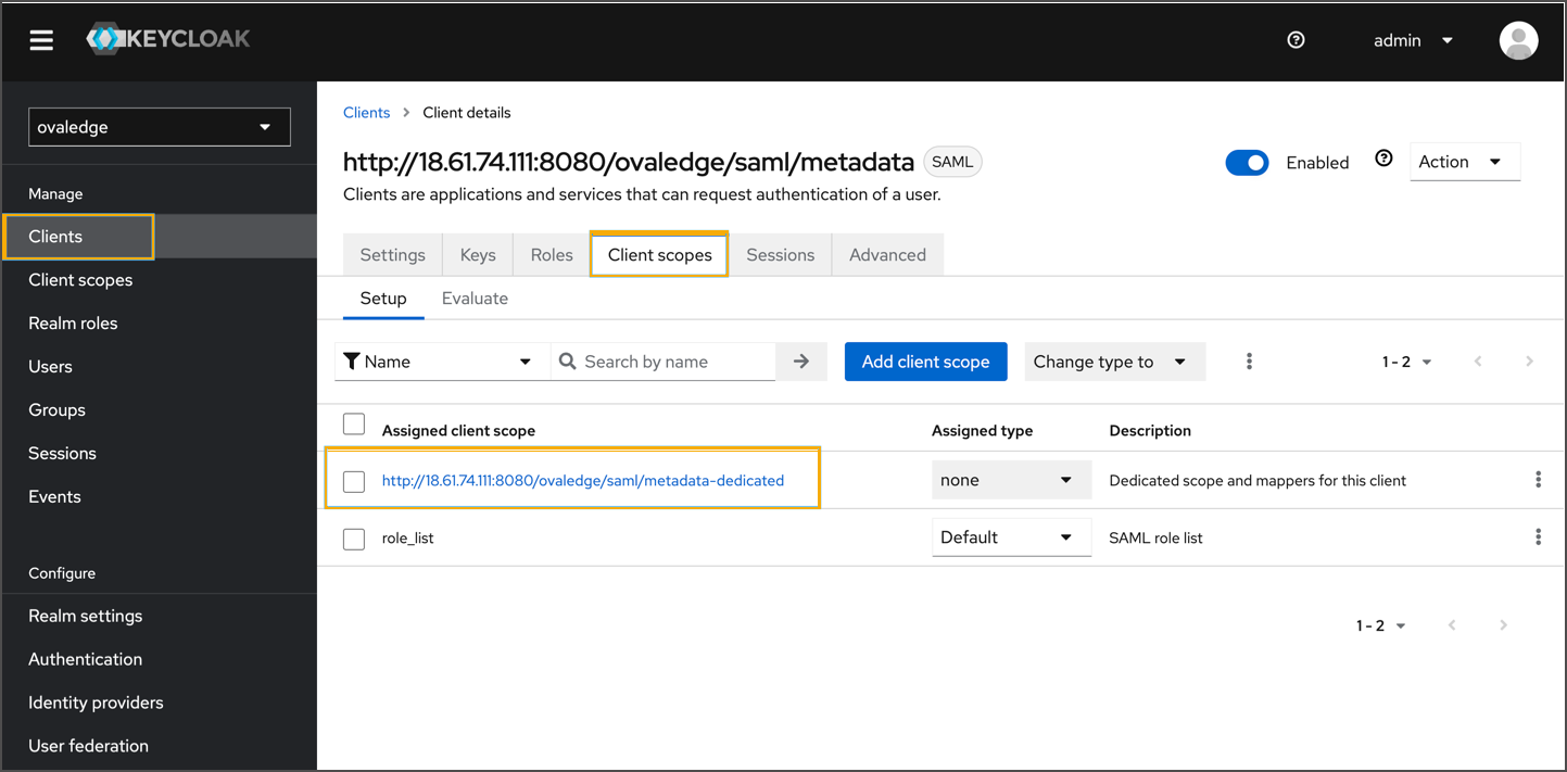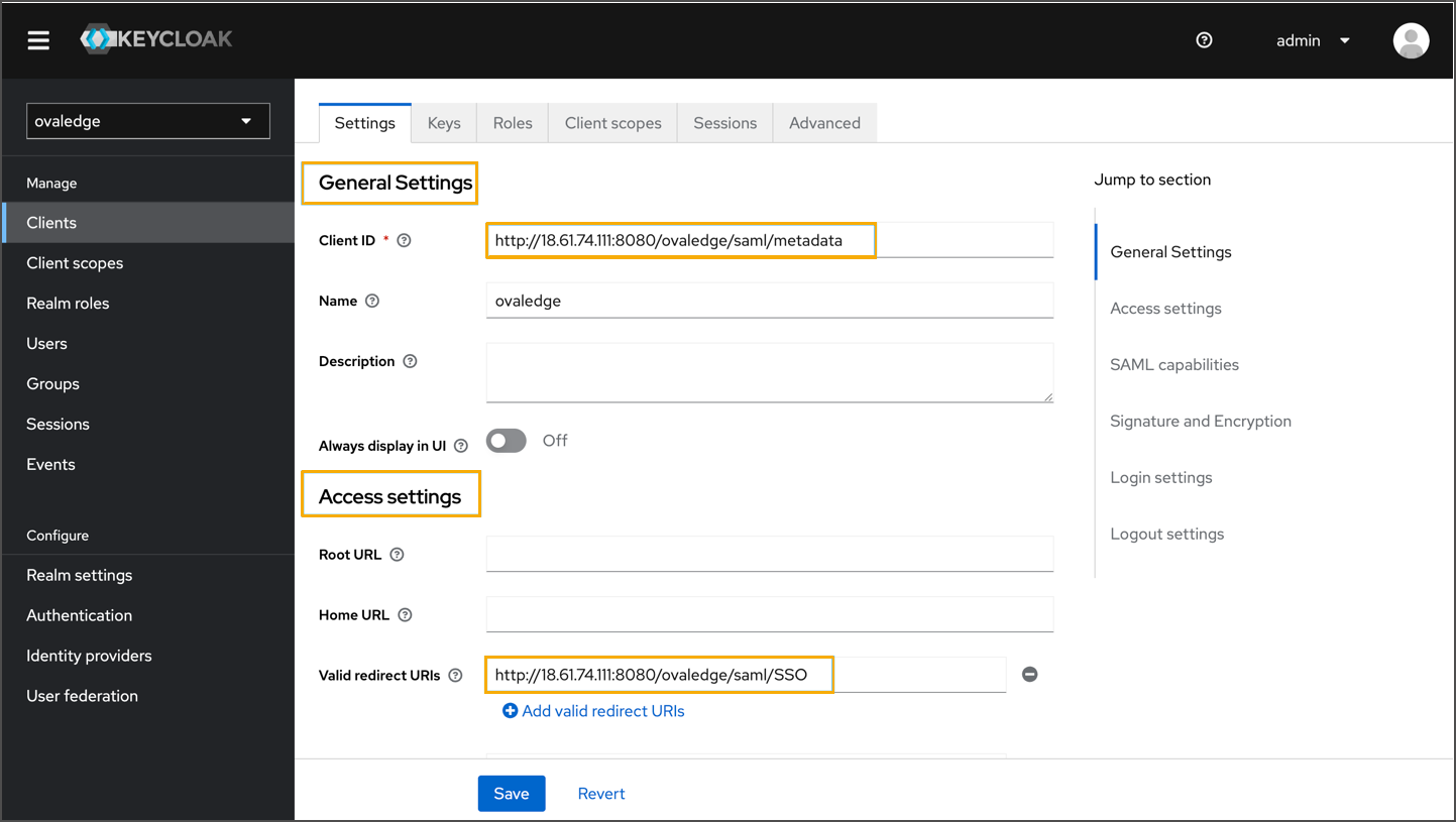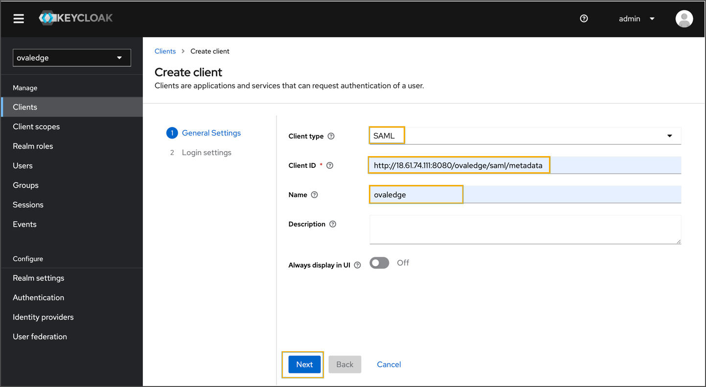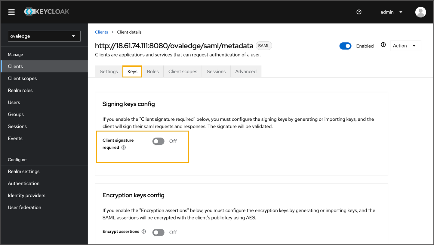 Configure the OvalEdge application with Keycloak SAML metadata.
