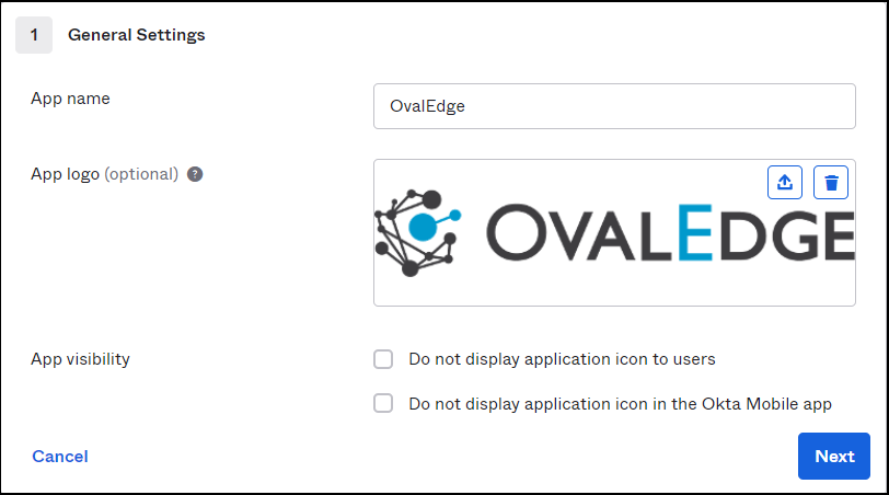Give the App name as OvalEdge and upload the OvalEdge logo, which is optional.