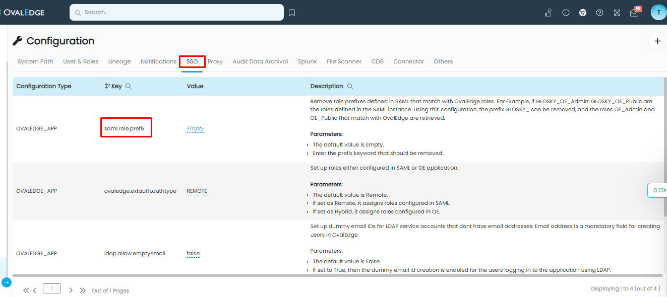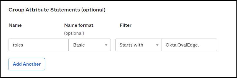 This Prefix must be configured in the OvalEdge Configuration as saml.role.prefix value.