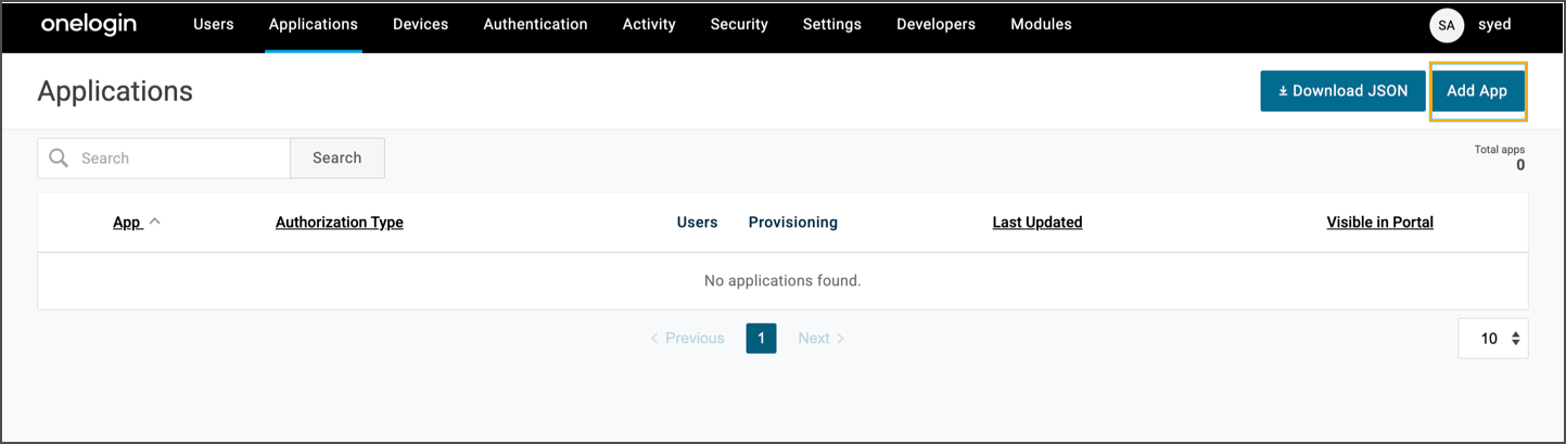 Navigate to Applications > Add App.