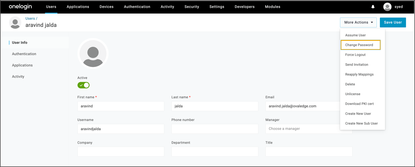 Set a password by selecting More Actions > Change Password.