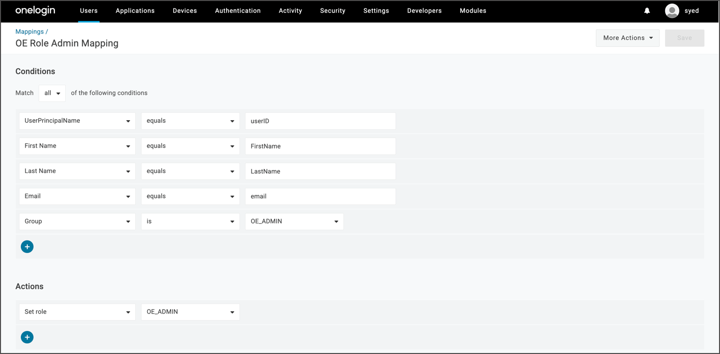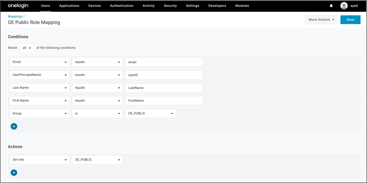 Member Of → Value: User Role