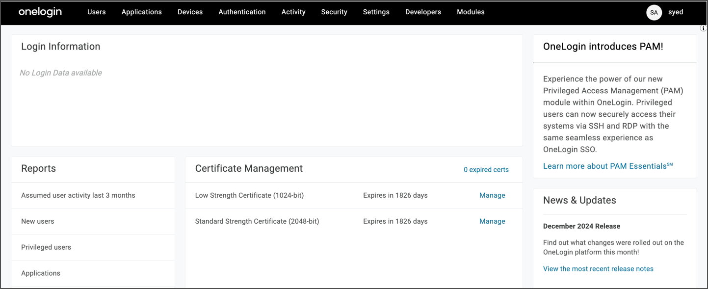 Log in to the OneLogin portal.