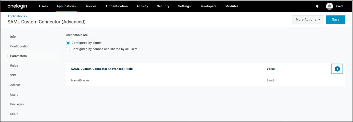 Navigate to the Parameters tab and clicking the + icon. Ensure the “configured by admin” option is checked for credentials.