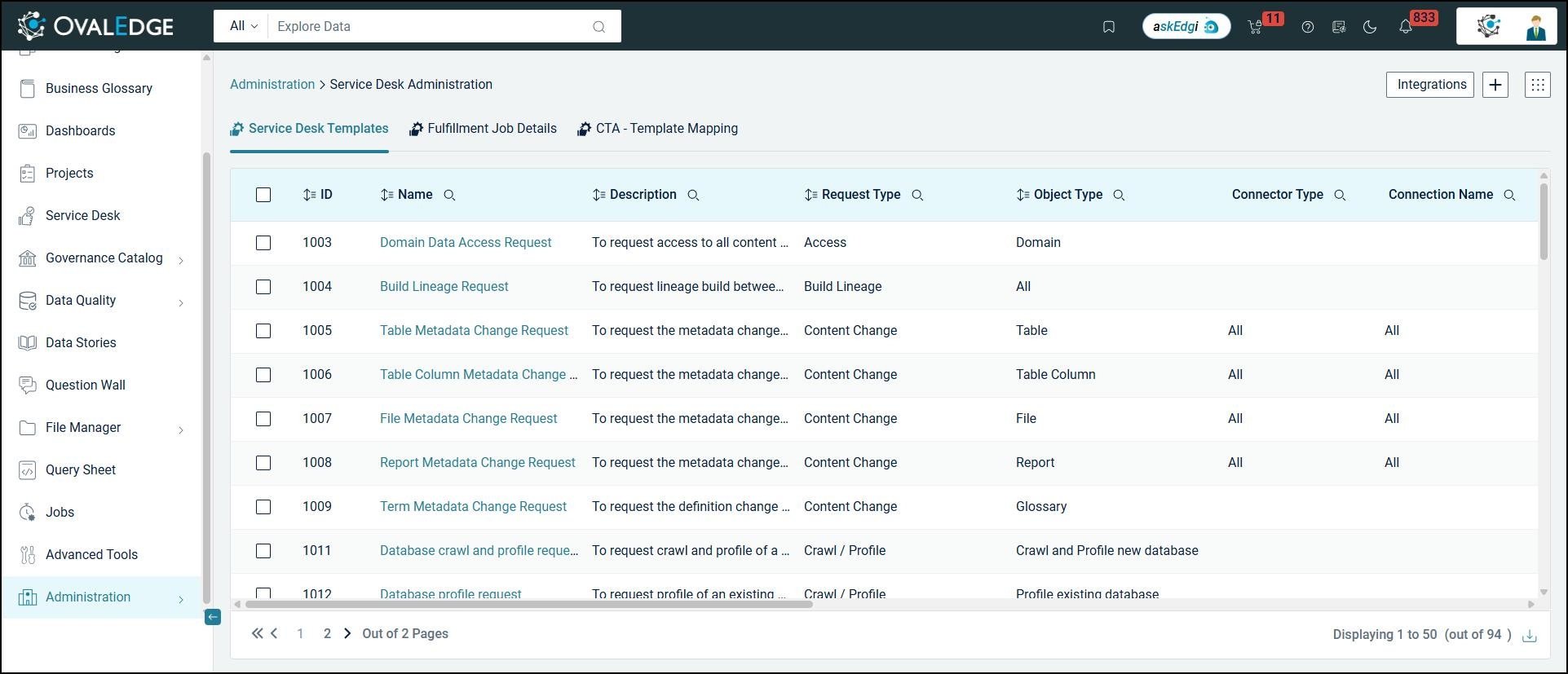 OvalEdge supports integration with JIRA, enabling users to track and approve service requests efficiently. JIRA fields can be mapped to corresponding Service Desk fields in OvalEdge, with the flexibility of one-to-one, one-to-many, or many-to-one mappings.