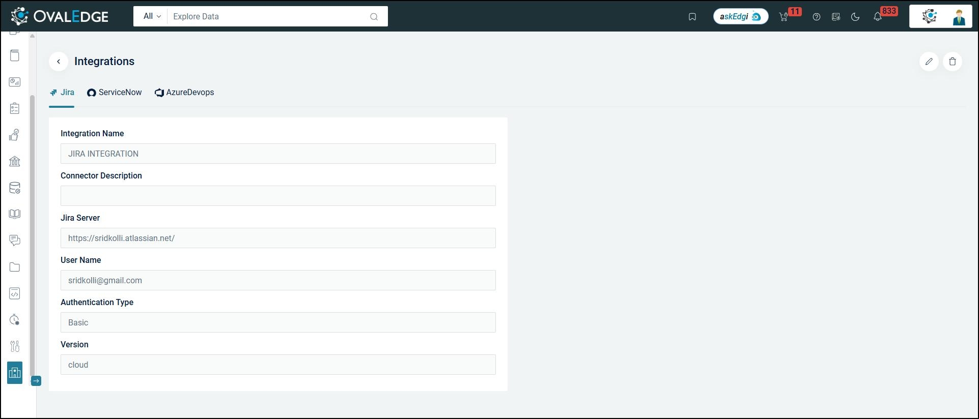 The minimum supported JIRA version for OvalEdge integration is JIRA R8.0 or higher.