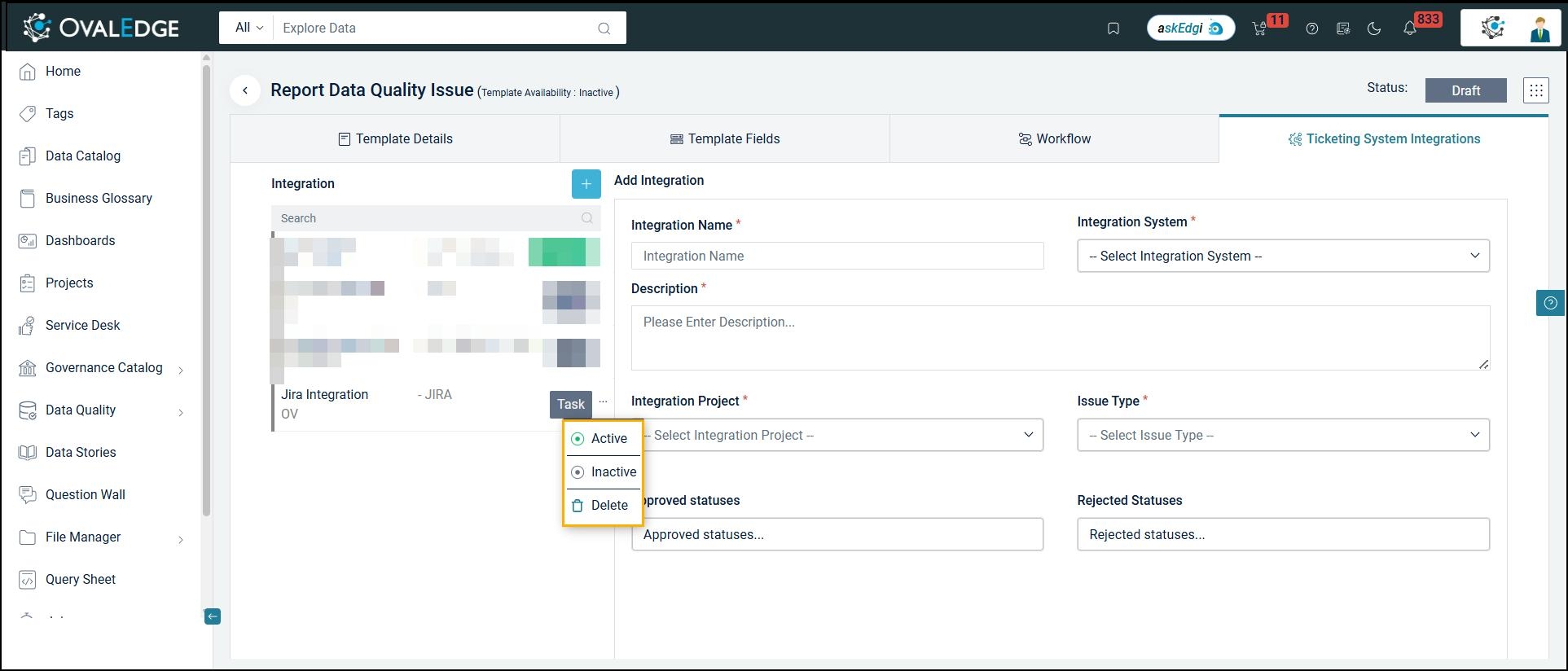 The integration ensures seamless tracking and approval workflows between OvalEdge and JIRA.