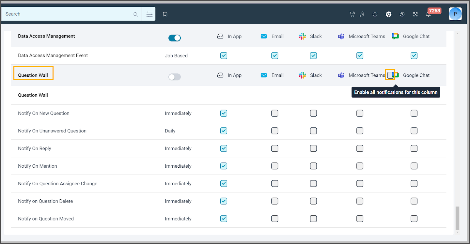To receive notifications, users must select the check box next to Microsoft Teams in their My Profile Notification settings with respect to the module.