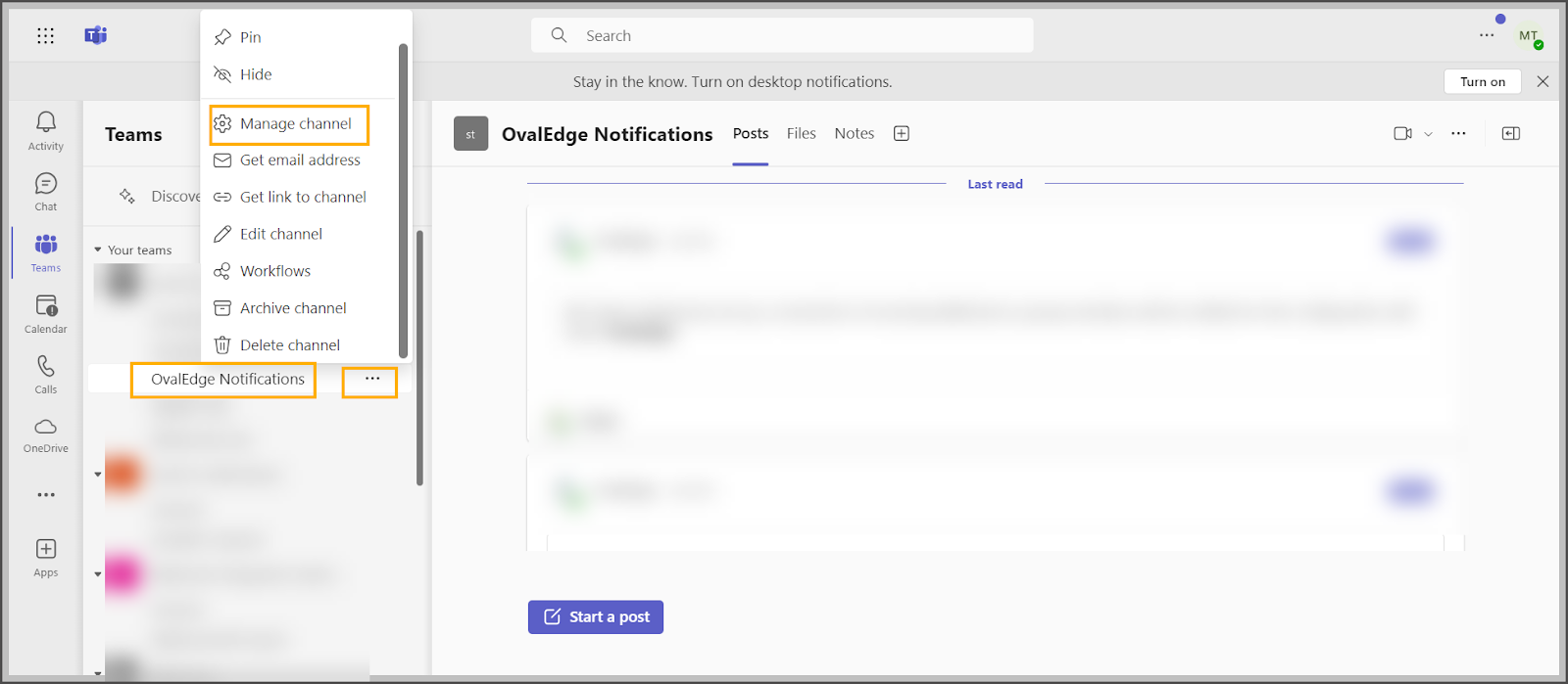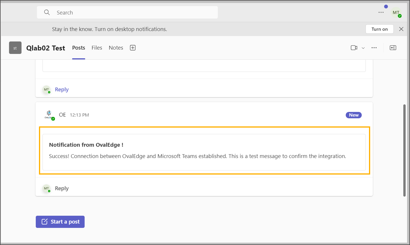 OvalEdge supports integration with Microsoft Teams through webhooks to receive notifications. Users who upgrade to the Microsoft Teams version must configure Workflows to receive Notifications.