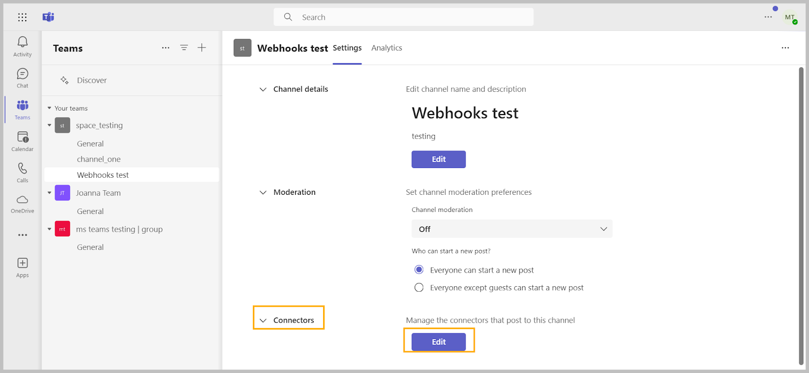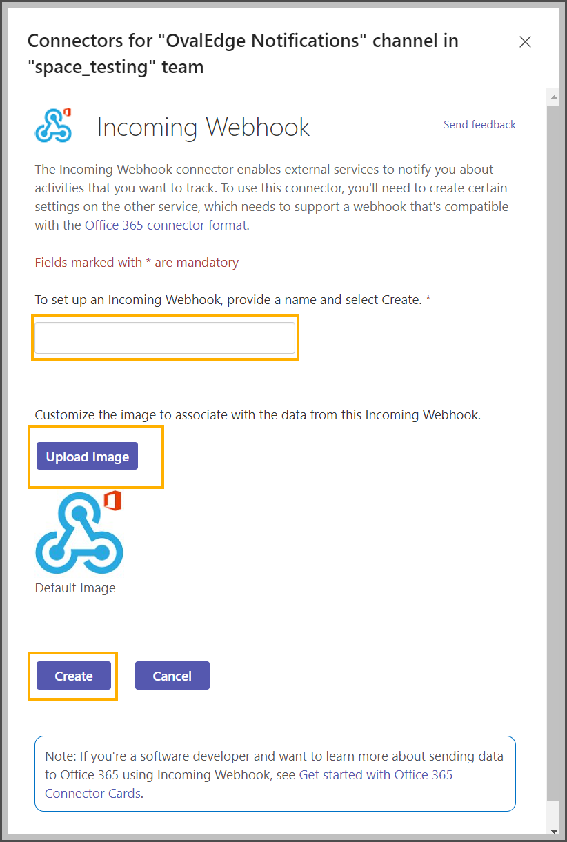 Create a Microsoft Teams space to receive notifications and generate a webhook link
