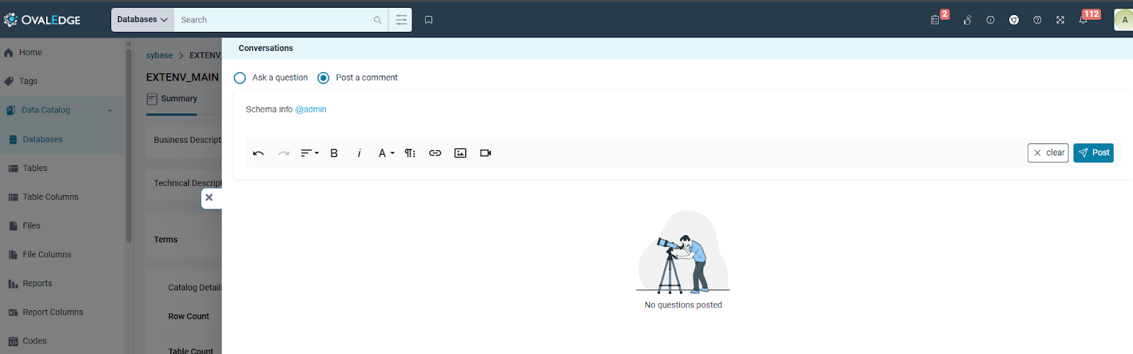 In the Schema Summary page, click on the Collaboration icon and enter the test information by tagging the administrator using @ annotation.