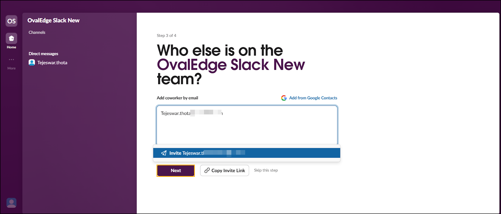 Enter the email addresses of your teammates who need to be included in the workspace and click the Next button. The purpose of the workspace window is displayed.
