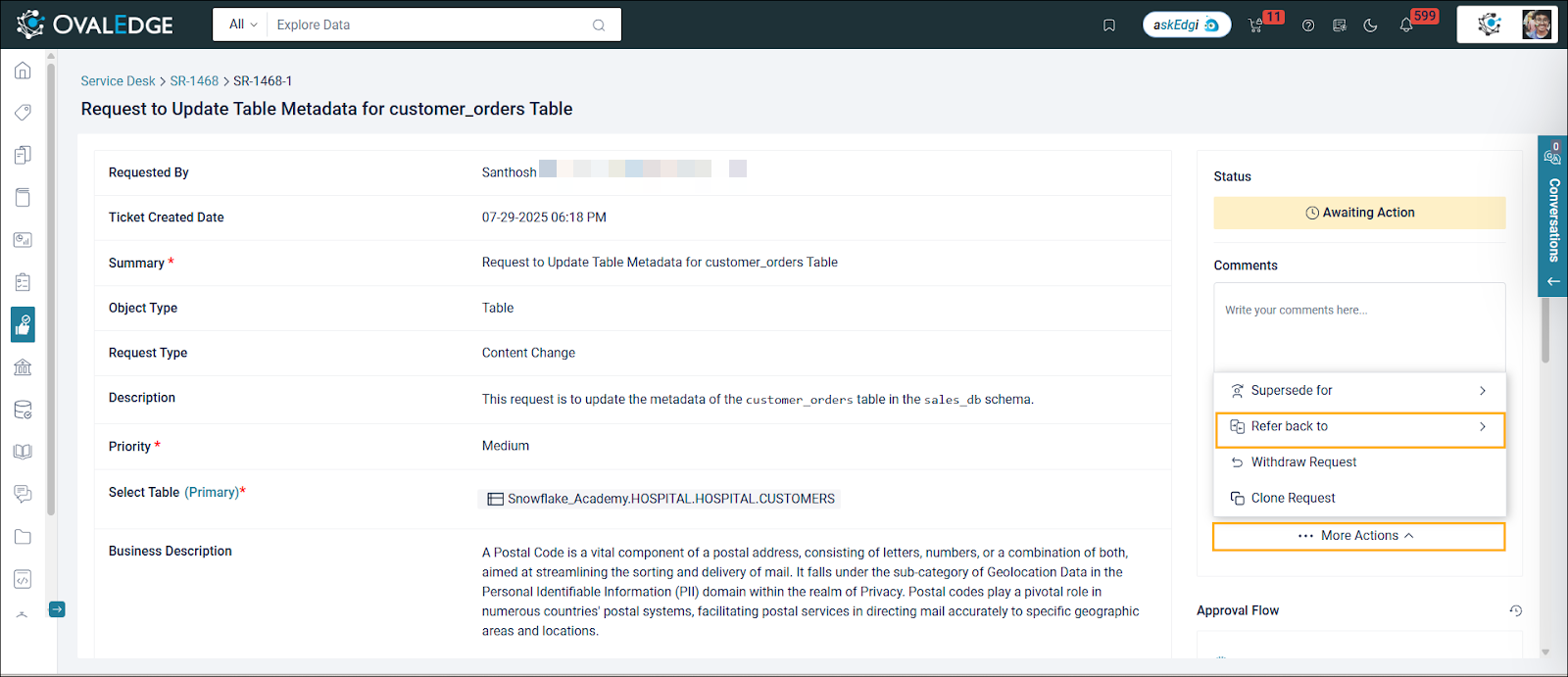 Approvers can now send requests back to requesters for additional information, enabling a more collaborative process by allowing requesters to update and resubmit incomplete or incorrect requests.