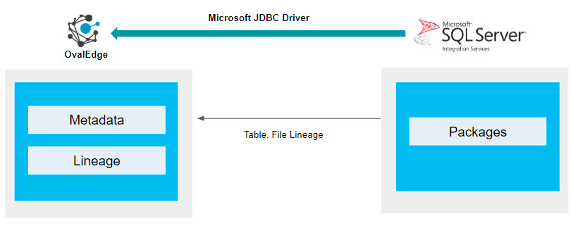 OvalEdge uses the Microsoft JDBC Driver to establish a connection with the SSIS data source. It retrieves metadata from the SSIS database, enabling users to crawl and profile sample data. OvalEdge then constructs a lineage, illustrating the movement of crawled data and displaying relationships between objects and their profile statistics